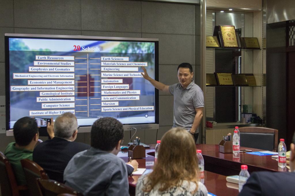 2019年5月29日,中国地质大学(武汉机电学院在教二楼301室隆重举行。中国地质大学(武汉)副校长王华、法国Universite de Technologie de Troyes(法国特鲁瓦技术大学)的Houman Borouchaki教授、INRIA GAMMA3(法国国立自动化和计算机研究院)的Abel Cherouat教授、Olesya等知名专家及七名留法青年学者、机电学院党委书记瞿祥华院长丁华锋以及学院各系老师及学院本科生、研究生共一百多人参与了此次会议