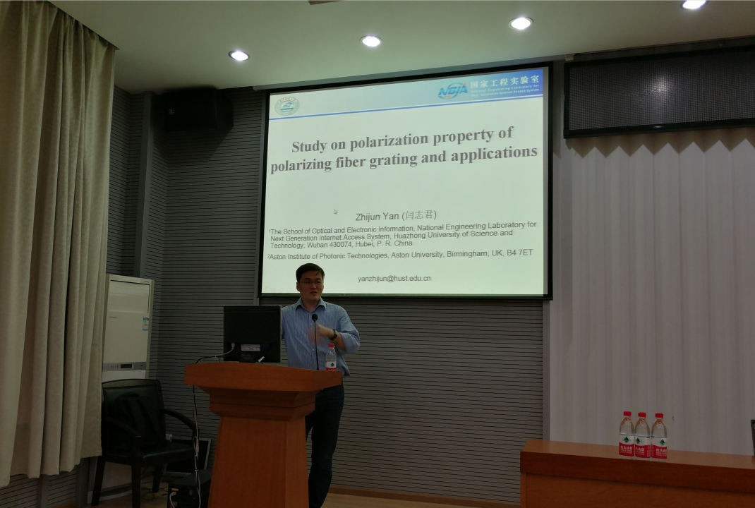 应MILE米乐官方网站院长丁华锋教授及科发院邀请,华中科技大学光学与电子信息学院闫志君博士于10月9号来我院作题为“倾斜光纤光栅偏振特性及其应用”学术报告。