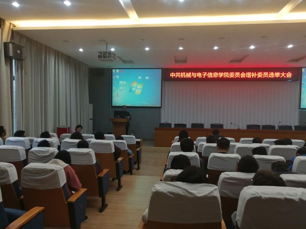 经请示校党委组织部批准,中共MILE米乐官方网站委员会增补委员选举大会于2019年3月21在教二楼301报告厅举行。校党委组织部梁本哲副部长莅临大会指导工作,党委副书记于晓舟同志主持大会。
