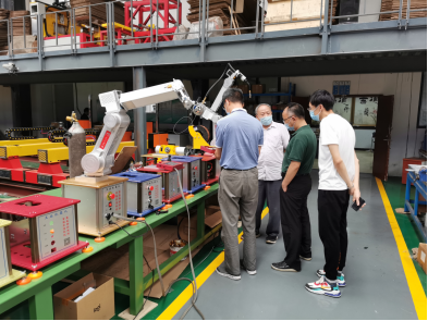 瞿祥华书记代表学院感谢武汉蓝讯科技在教学、科研方面给予学院宝贵的支持。表示将切实推进学院与蓝讯科技合作,将整合学院的科研团队,促进学院教师结合企业实际需要,参与到蓝讯科技的实际项目中进行科学研究。指出后续希望可以蓝讯科技作为新生入学教育及学生实践教育基地,对开阔学生视野、提高科研能力有很大帮助。在参观工业机器人产线时,瞿祥华书记也建议武汉蓝讯科技可申请教育部产教融合,衔接和推广职业培训,增加工业机器人的实际功能、趣味功能和虚拟现实功能,并提出学院教师参与蓝讯科技项目研发实现共赢。李波副院长指出将切实推动学院教学实践环节改革,将学生的实习结合到企业的实际需要中,整合学院教师、学生共同成为工业机器人研发力量,并进一步表示学院教师机器人协同、虚拟现实等方面的研究将助力武汉蓝讯科技品牌力量的提升。