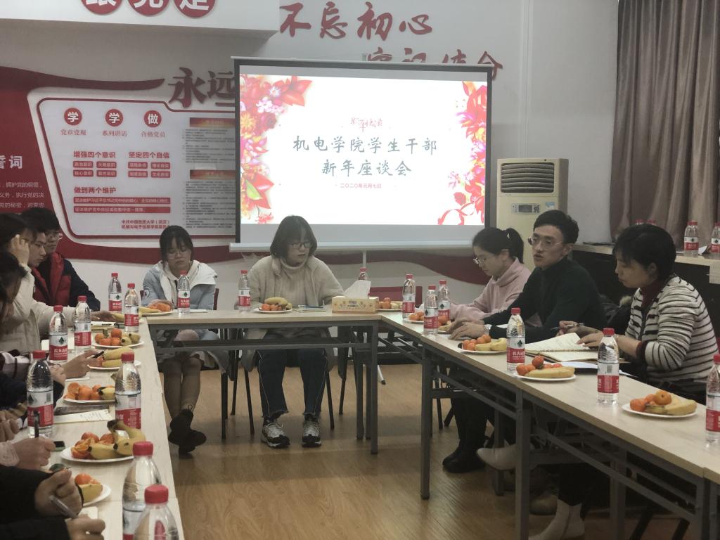 (通讯员 罗采薇)1月7日下午在教二楼308召开机电学院学生干部新年座谈会。学院党委书记瞿祥华、党委副书记于晓舟、学工组全体辅导员及各学生组织干部代表欢聚一堂,共话新年。杜育主持座谈会。