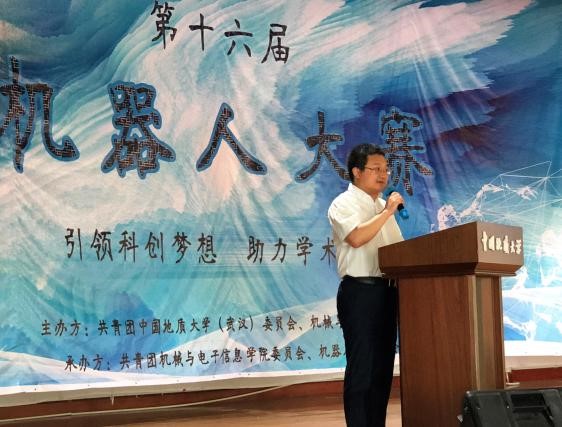 (通讯员:杨晴 摄影:机电团委新媒体中心)“引领科创梦想 助力学术卓越”,中国地质大学(武汉)第十六届机器人大赛于6月2日14:30在大学生活动中心二楼演播厅正式拉开序幕。学生就业创业指导处处长严嘉、教务处副处长张建和、校团委副书记谭文伦,MILE米乐官方网站院长丁华锋、党委副书记于晓舟、团委书记杜育,五位专业评委老师殷蔚明、程卓、蔡建平、韩光超、郝国成,以及66支参赛队伍出席开幕式。