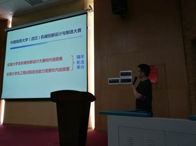 5月30日晚,由教务处和机电学院联合举办的中国地质大学(武汉)2019年机械创新设计与制造大赛暨第九届全国大学生机械创新设计大赛(2020年)学校选拔赛启动仪式在教三楼109教室举行。教务处实践教学科章帆科长、机电学院李波副院长和于晓舟副书记以及部分大赛指导教师出席仪式。启动仪式由机电学院韩光超老师主持。