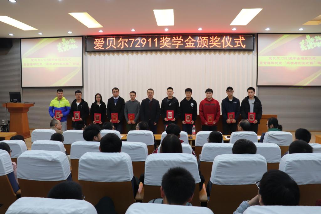 (通讯员 罗采薇 吴毓良 摄影 杨彪) 11月16日下午4时,“爱贝尔72911”奖学金颁奖仪式暨《求学与创新之路》主题讲座在教二楼301室举行。出席本次活动的有机电学院党委书记瞿祥华,党委副书记于晓舟,副院长罗杰,机电学院优秀校友、“爱贝尔72911”奖学金设立者、美国爱贝尔公司总裁兼CEO黄海晖先生。参加本次活动的有“爱贝尔72911”奖学金获奖同学以及机电学院部分学生代表。