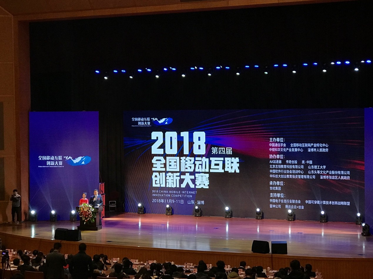 (通讯员:张彬彬)2018年11月9日-11日, “2018全国移动互联创新大赛”总决赛在山东淄博山东理工大学隆重举行,来自华南理工大学、吉林大学、天津大学、北京交通大学、海军工程大学、华中师范大学等全国各高校600多名师生,与南京图格医疗科技有限公司、中视爱国(北京)机器人科技有限公司、江苏启飞应用航空科技有限公司等近百家创新企业的200多个科技创新项目参加总决赛。大赛由国家工业和信息化部、中国科学技术协会指导,中国通信学会、全国移动互联网产业孵化中心、中视科华文化产业发展中心、淄博市政府联合主办。此赛是响应中央号召,以提高全民创新创业意识和能力,以“互联网+”思维促进创新产品的市场转化为宗旨的国家级赛事,是实施新旧动能转换重大工程、建设新型工业化强市的重大举措,是国内移动互联网创新人才、创投资本、创新项目等各类创新资源互动交流的重要平台。