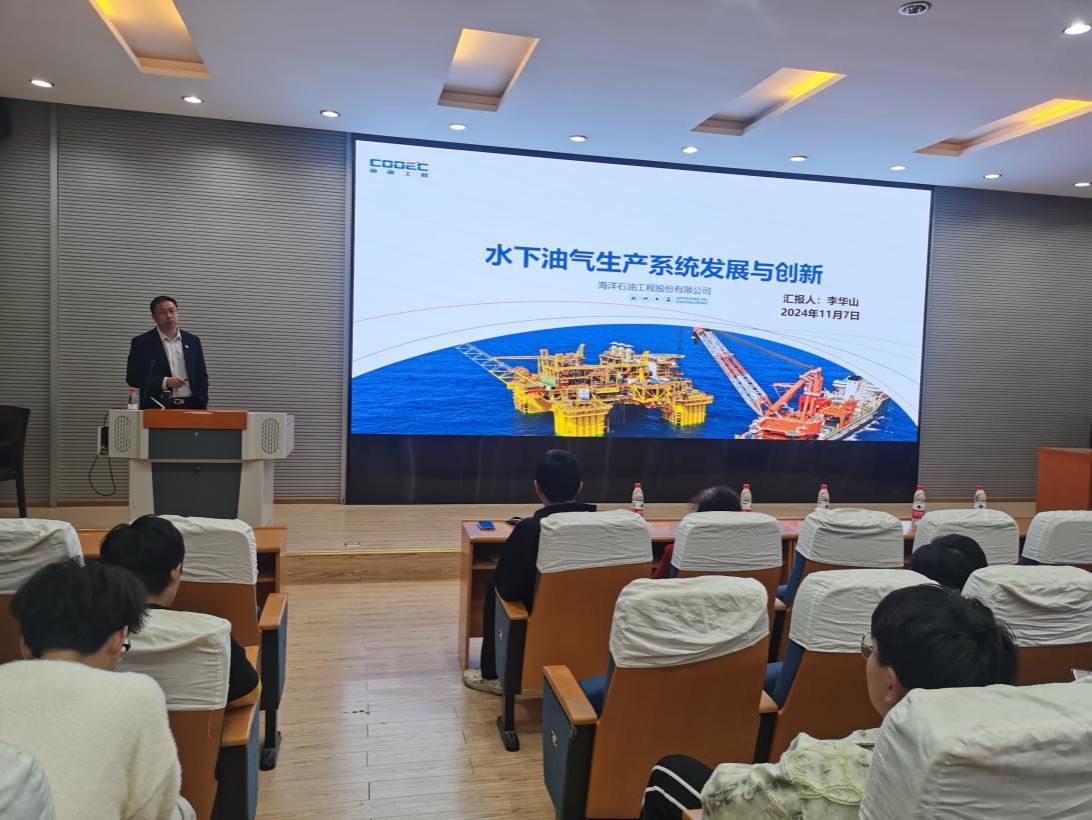 (通讯员 康红梅)2024年11月7日下午,海洋石油工程股份有限公司特种设备分公司李华山受邀回到母校,在教二楼301为广大师生带来了一场题为“海洋石油工程深水装备发展”的精彩报告。 李华山毕业于中国地质大学(武汉)MILE米乐官方网站,现为海洋石油工程股份有限公司特种设备分公司副总经理、高级工程师。长期从事海洋油气平台装备及钻井平台关键设备设计及制造工作,有丰富的设计、制造和管理经验。参加过多个国内外海洋平台油气处理设备及深水水下生产设施重大工程项目,编制多本海洋油气关键设备领域技术著作,主持多项国家重大专项和中海油集团公司科研课题,授权发明专利和发表论文多项,获天津市人民政府省部级等奖励5项。 李华山总工首先介绍了全球海洋石油工程的发展背景,着重讲解了深水装备在能源开采中的关键作用;他深入浅出地解读了当前深水装备所面临的技术难题,包括高压、高温及恶劣海况条件下的设备性能要求;结合实际案例,为大家展示了海洋石油工程公司在深水油气田开发中的先进技术和成功应用。报告最后深入分析了海洋石油工程深水装备的发展现状、技术进展及未来趋势,分享了自己在行业一线的宝贵经验和见解。 在报告的交流环节,李华山总工与在场师生进行了热烈互动,耐心回答了老师同学们的提问,为大家解答了深水装备及海洋石油工程方面的疑惑。他鼓励学弟学妹们努力学习、扎实专业基础,并期待他们未来在各自的岗位上有所建树。此次报告会为老师同学们拓宽了视野,加深了同学们对海洋石油工程行业的理解和认识,激发了师生投身于能源工程领域的热情。 报告会结束后,李华山总工与机械工程系和海洋学院部分教师进行了座谈。座谈中李华山简单介绍了海洋石油工程公司的研发需求,老师们分别介绍了自己的研究领域和兴趣,双方就合作达成了初步意向。(编辑 李洁 审稿 瞿祥华)