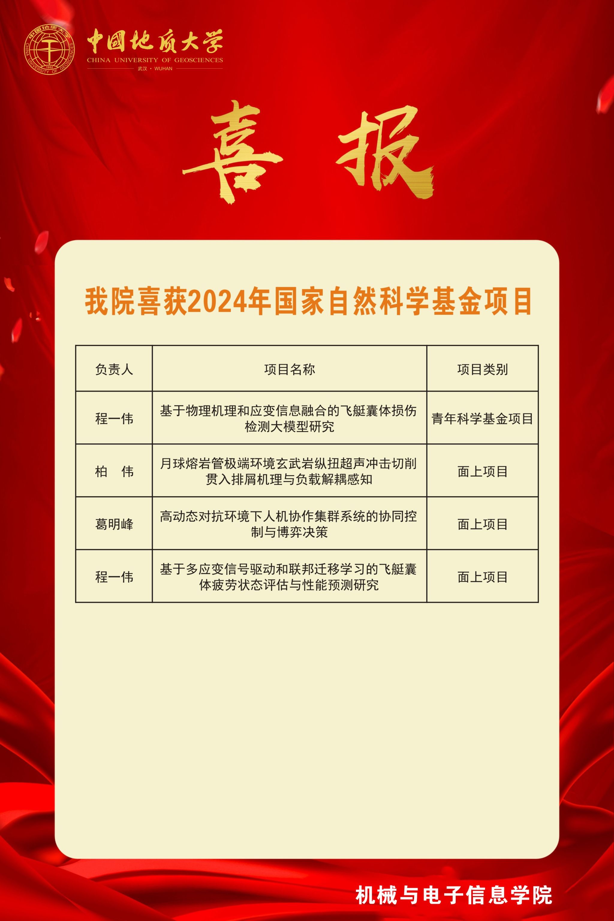 喜报-MILE米乐官网2024年获得4项国家自然科学基金