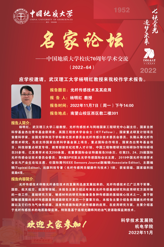 【11月7日】校庆系列学术活动---名家论坛(2022-64):武汉理工大学杨明红教授