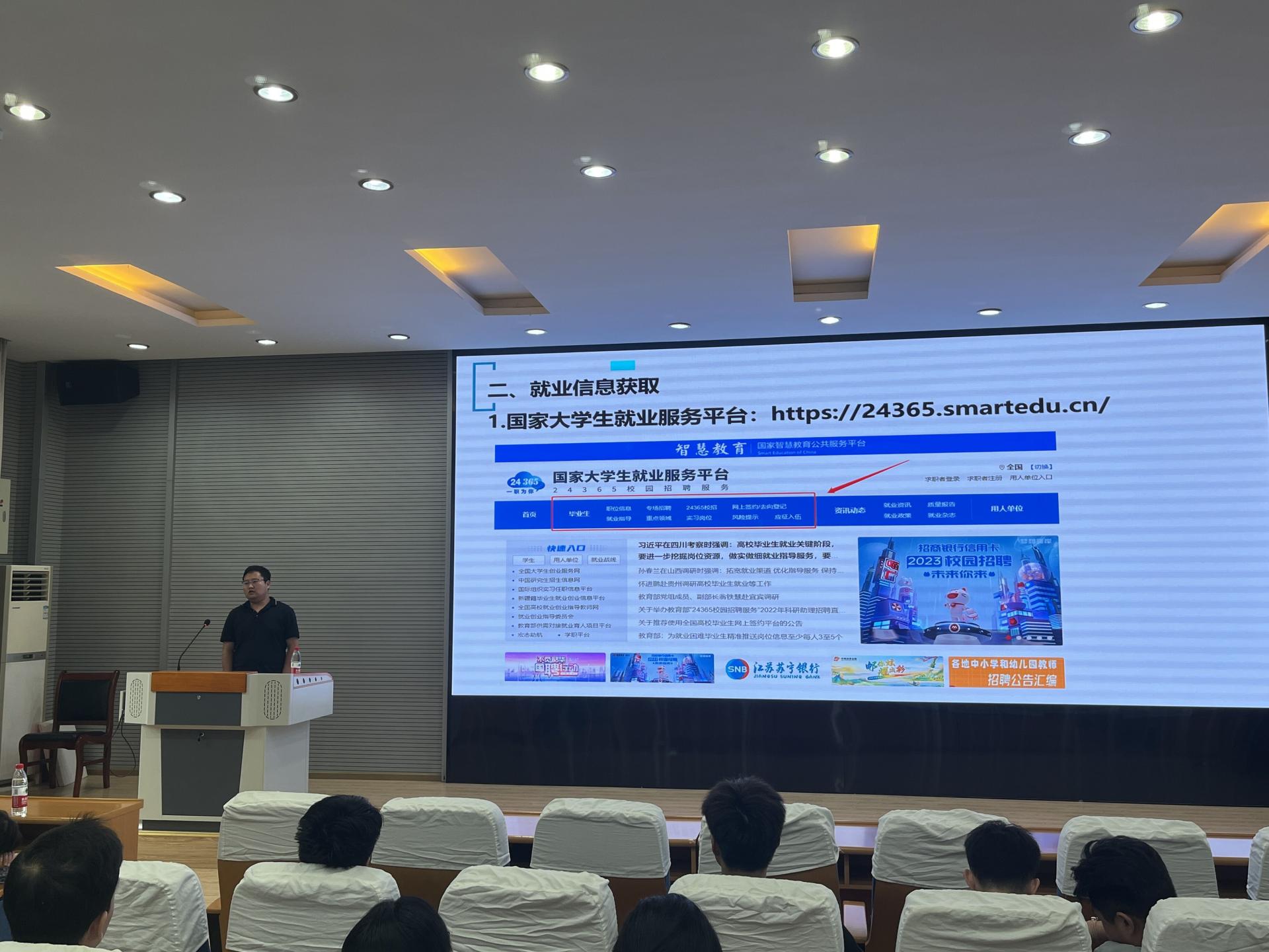 会上,刘彪从就业信息获取渠道出发,分析了当前就业形势,解读了学生就业管理相关事项,结合具体案例引导广大毕业生深入思考“如何好毕业、毕好业”。同时强调广大毕业生要以此次大会为契机,明确掌握就业动向,做好职业规划,紧抓关键时间节点,不断提升就业能力,坚定就业自信。