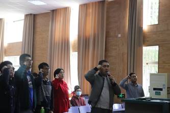 买买提带领参会党员庄严宣誓,重温入党誓词。