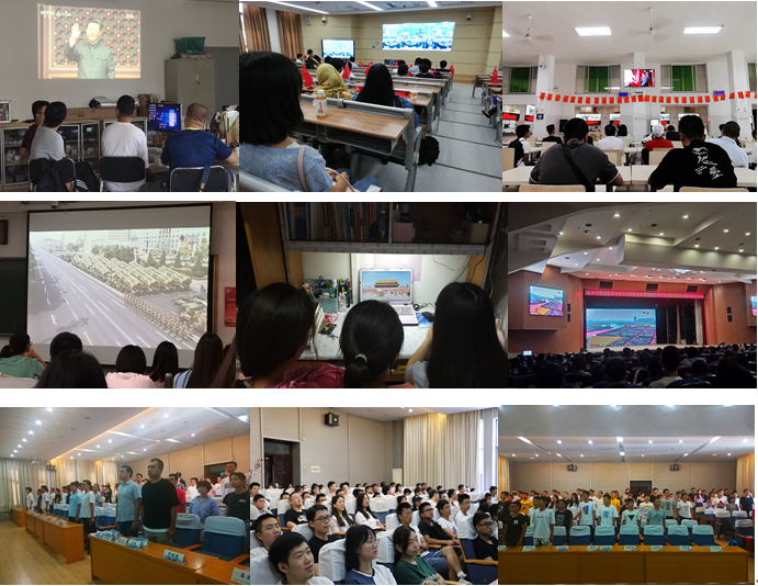 (通讯员:武开群 摄影:孙灿 武开群 徐恒福)10月1日上午10时,庆祝中华人民共和国成立70周年大会在北京天安门广场隆重举行,中共中央总书记、国家主席、中央军委主席习近平出席大会并发表重要讲话。MILE米乐官方网站组织师生代表在弘毅堂与教二楼301报告厅观看大会盛况,同时号召全院同学以团支部、宿舍、实验室等为单位集中观看大会直播。