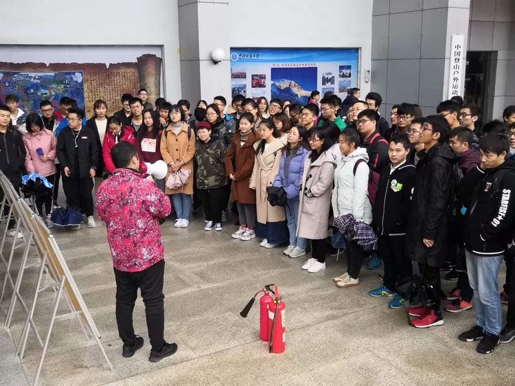 之后杜育老师上台发言,他说大学校园并不是一片乐土,同学们身在校园中也需警惕各种危险。培训最后,于晓舟书记发言,她强调同学们需注意自身生命、财产安全,谨防诈骗、校园贷等问题,希望大家都能够在地大平平安安地求学。全体成员移至西区体育馆门口进行消防学习。