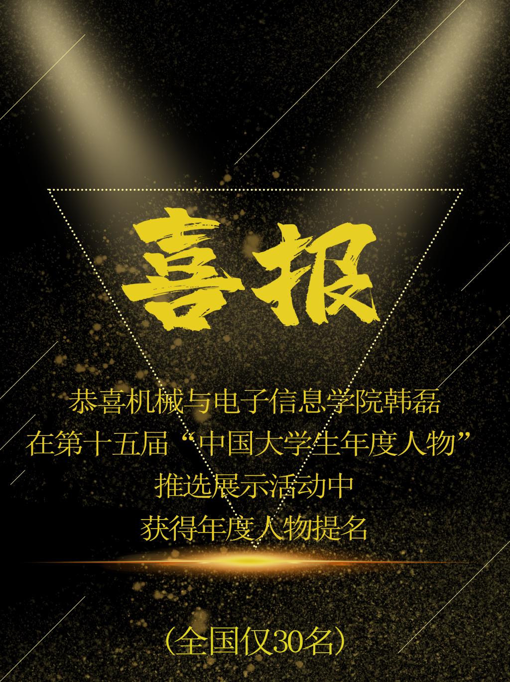 [2020.10]MILE米乐官网韩磊同学获第十五届“中国大学生年度人物”人物提名
