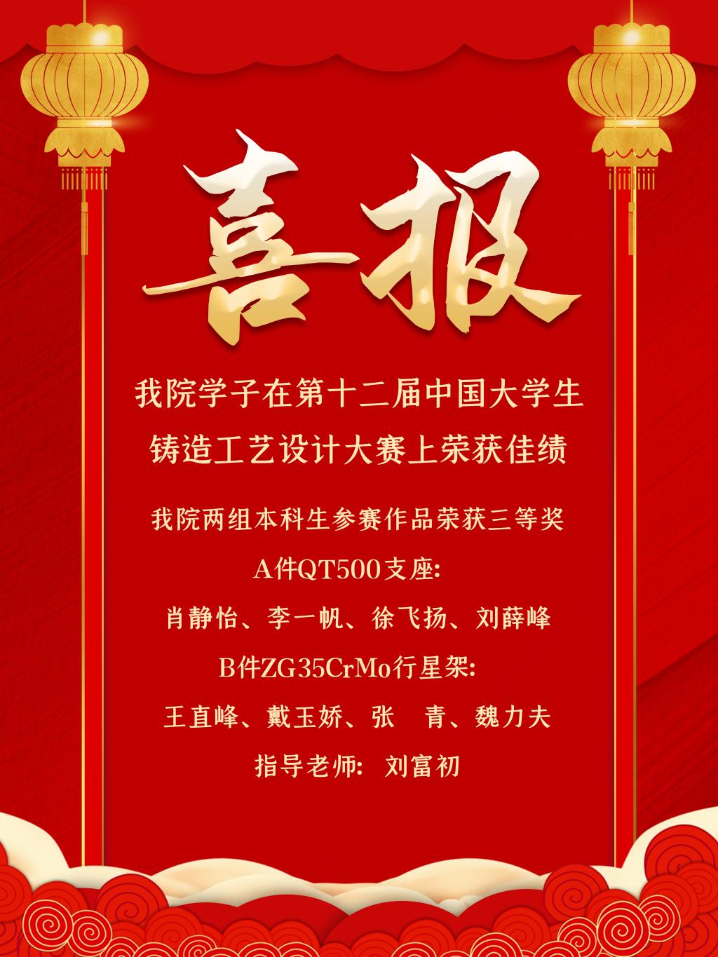 [2021.5]MILE米乐官网学子在第十二届中国大学生铸造工艺设计大赛上荣获佳绩