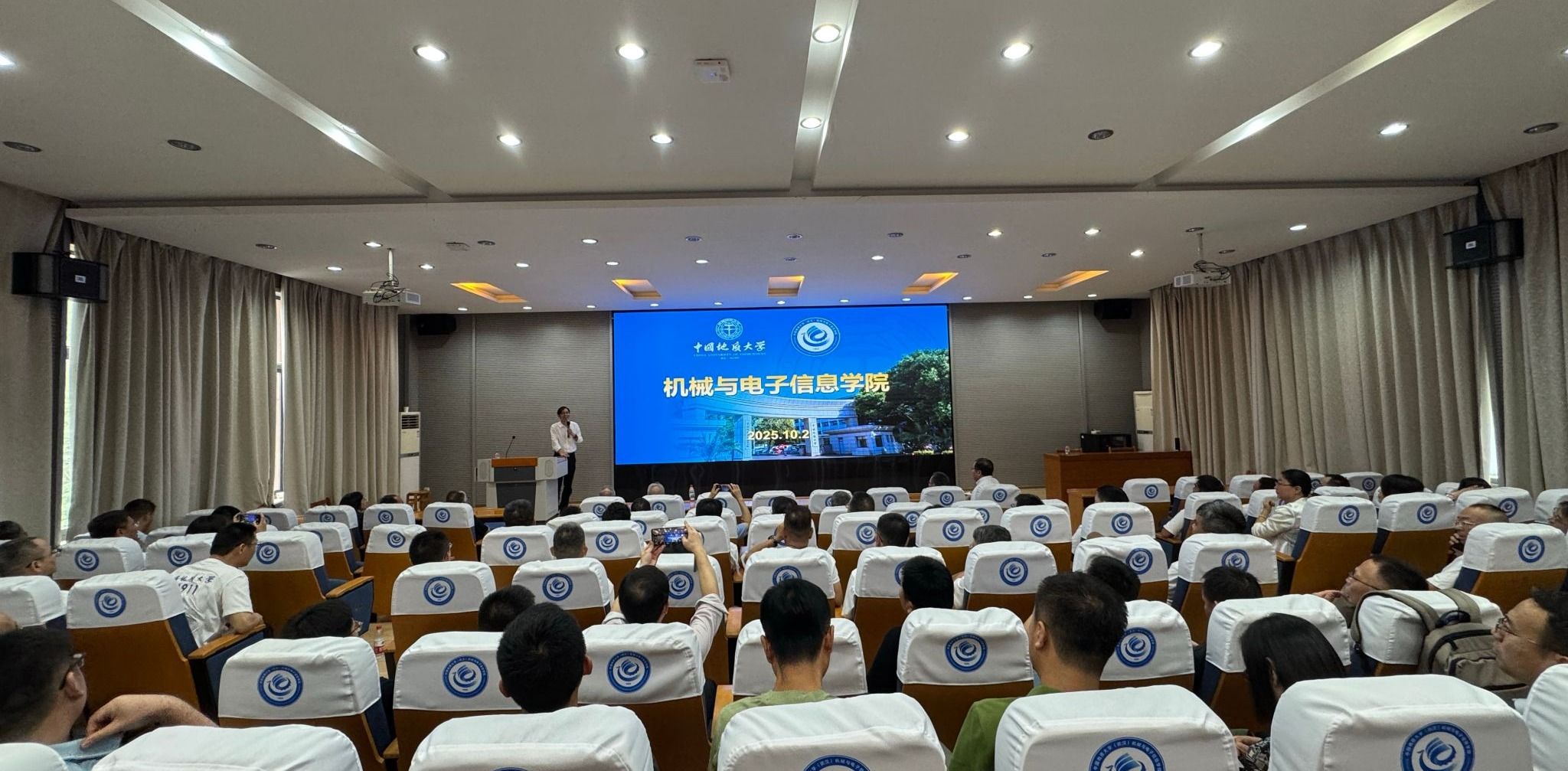 随后,机电学院院长宁伏龙以“与地大机电的深厚缘分”为切入点,深情回顾与机电学院和教二楼的难忘经历,引发在场校友与教师的情感共鸣。他系统梳理机电学院的历史沿革,详细介绍学院现有师资力量、科研平台及实习基地建设情况,重点聚焦本科教育质量与人才培养举措:从优秀毕业生代表的成长案例,到“李四光计划”、“紫金联合培养班”、“中德合作办学项目”等特色育人项目,全面展现学院多元化的人才培养路径。同时,宁院长宣布学院两大新动态:新增“机器人工程”本科专业、设立“低空技术与工程”硕博点。这两项举措为学院学科建设注入新鲜活力,进一步拓宽了育人维度,为学生成长提供更多可能。最后,宁伏龙院长向在场校友发出诚挚呼吁,期待大家结合自身行业经验与资源,为学院学科建设、产学研合作等领域献言献策,携手助力地大机电实现更高质量的发展。