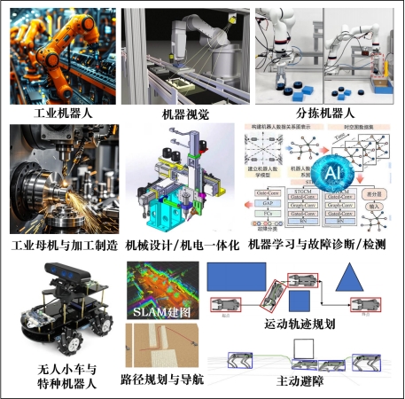 主要围绕智能制造与机器人、工业母机和地质装备等领域,开展机器人各项技术、机械设计与建模、机电一体化、故障诊断与检测技术、自动化控制、机器视觉、路径规划、建图/导航等研究。